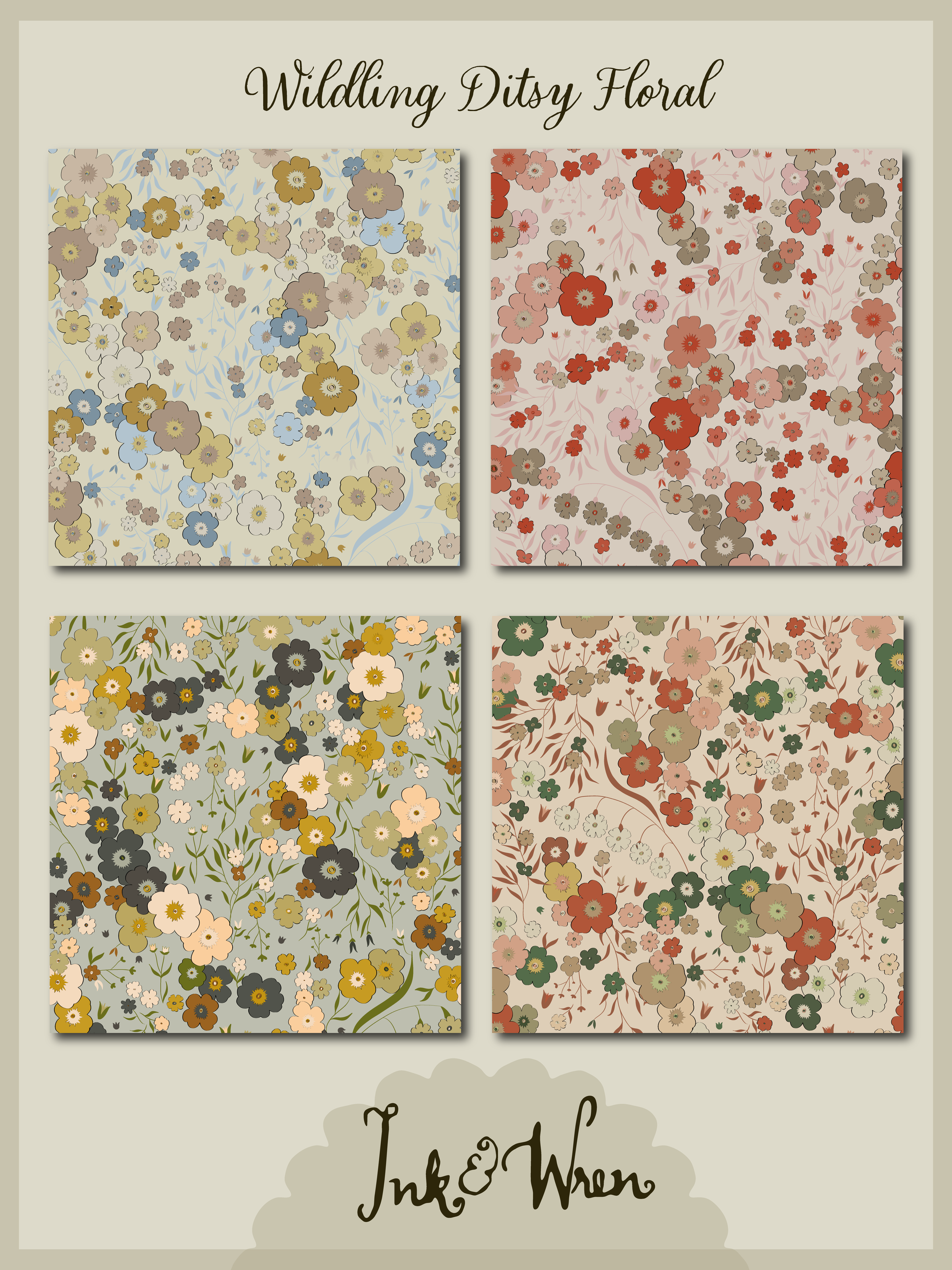 Spoonflower Shop Link A selection of patterns for wallpaper, fabric and home décor. Ink & Wren Designs